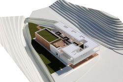 단면계획에서 1층 필로티 하부 휴게 데크 공간과 경사로 공간은 내외부 소통을 원활하게 해주는 공간으로 계획되었고, 중정과 수반계획으로 자연 채광과 환기가 가능한 친환경 설계를 도입하였다.